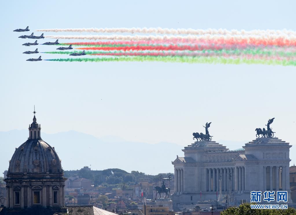 4月25日,意大利“三色箭”飛行表演隊在羅馬舉行的紀(jì)念儀式上噴出代表意大利國旗顏色的紅白綠三色煙霧。