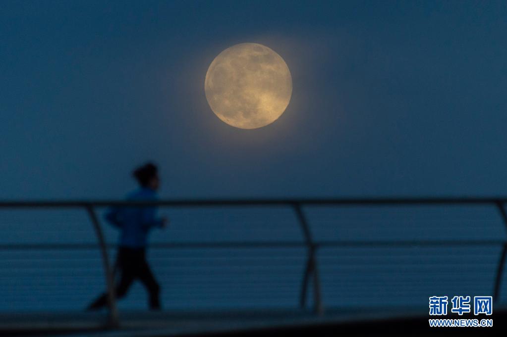 這是4月26日在英國(guó)倫敦拍攝的千禧橋附近的“超級(jí)月亮”。