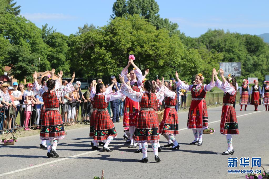 6月6日,在保加利亞卡贊勒克,人們在玫瑰節(jié)采摘儀式上表演。