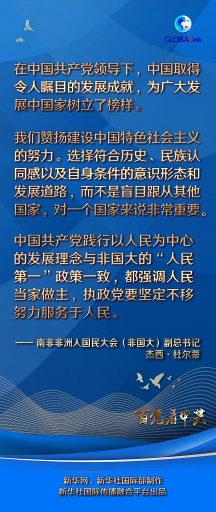 新華社約翰內(nèi)斯堡6月10日電 在中國(guó)共產(chǎn)黨領(lǐng)導(dǎo)下,中國(guó)取得令人矚目的發(fā)展成就,為廣大發(fā)展中國(guó)家樹(shù)立了榜樣,南非非洲人國(guó)民大會(huì)(非國(guó)大)副總書(shū)記杰西·杜爾蒂日前在接受新華社記者采訪時(shí)如是說(shuō)。