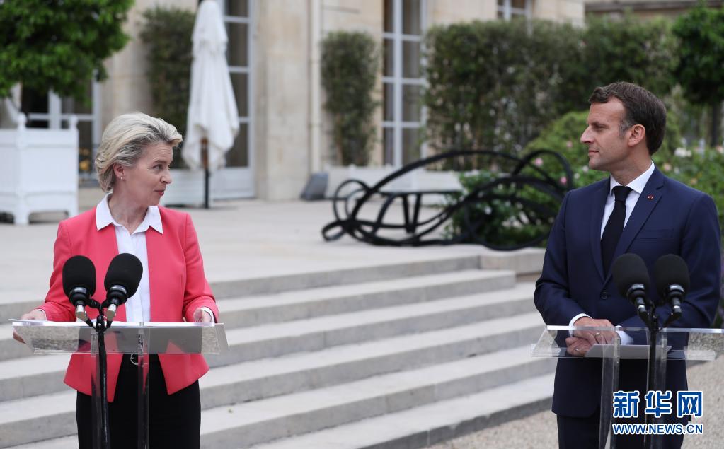6月23日,法國總統(tǒng)馬克龍(右)與歐盟委員會主席馮德萊恩在巴黎總統(tǒng)府愛麗舍宮出席新聞發(fā)布會。