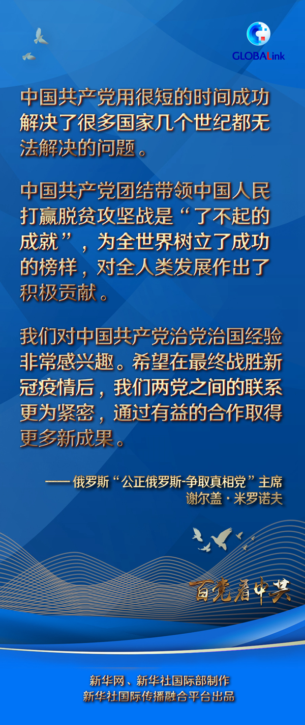 米羅諾夫說,中國共產(chǎn)黨團(tuán)結(jié)帶領(lǐng)中國人民打贏脫貧攻堅戰(zhàn)是“了不起的成就”,為全世界樹立了成功的榜樣,對全人類發(fā)展作出了積極貢獻(xiàn)。