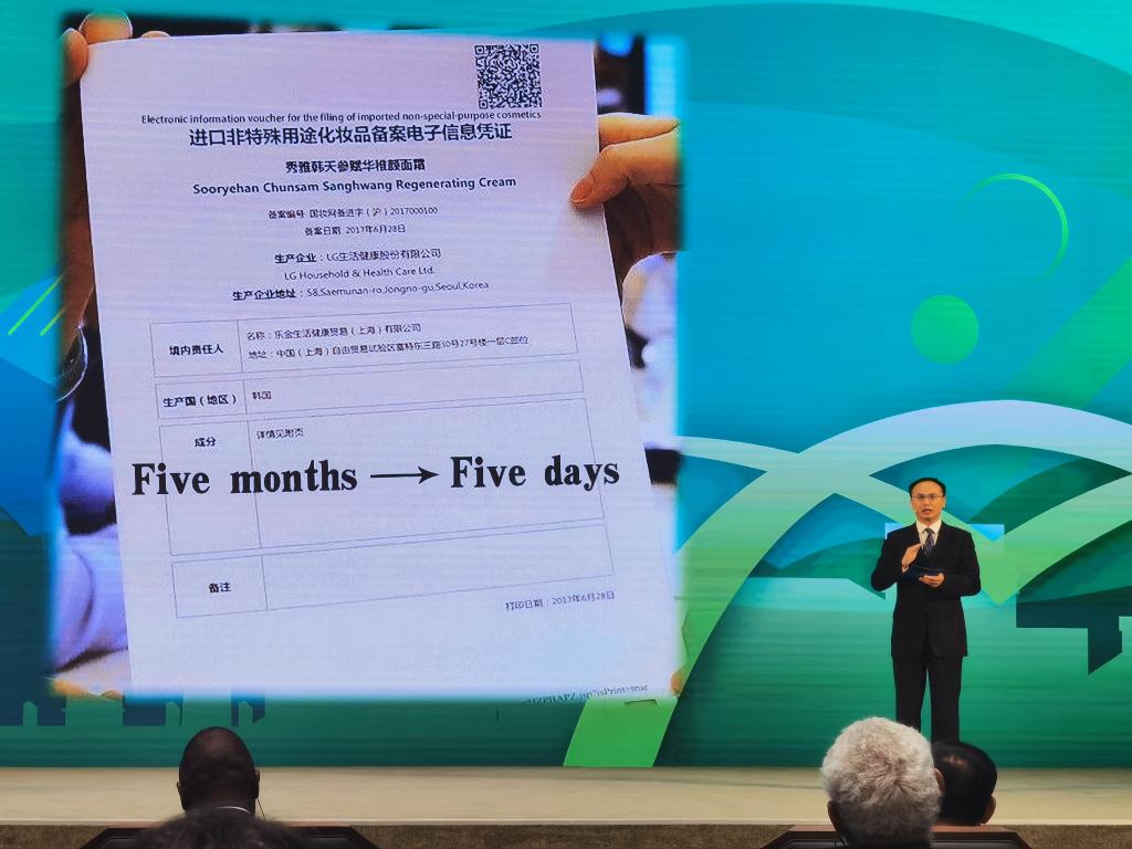 2021年6月16日,在“中國共產(chǎn)黨的故事——習近平新時代中國特色社會主義思想在上海的實踐”特別對話會上,中國(上海)自由貿(mào)易試驗區(qū)管委會政策研究局副局長鄭海鰲進行講述。 新華社記者 吳宇 攝
