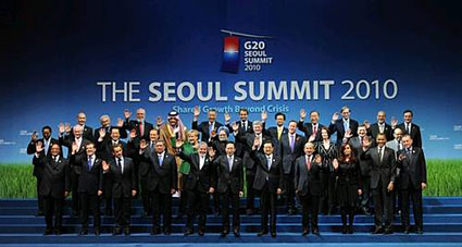 2010年11月,二十國集團第五次峰會在韓國首爾舉行。會議通過了《二十國集團首爾峰會宣言》。與會各方就“首爾行動計劃”達成共識,同意通過采取全面、合作和各自的政策行動,推動共同目標(biāo)的實現(xiàn)。